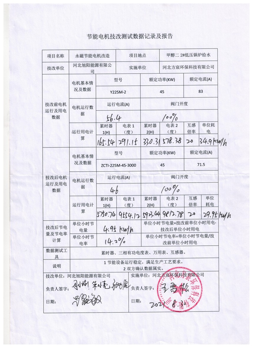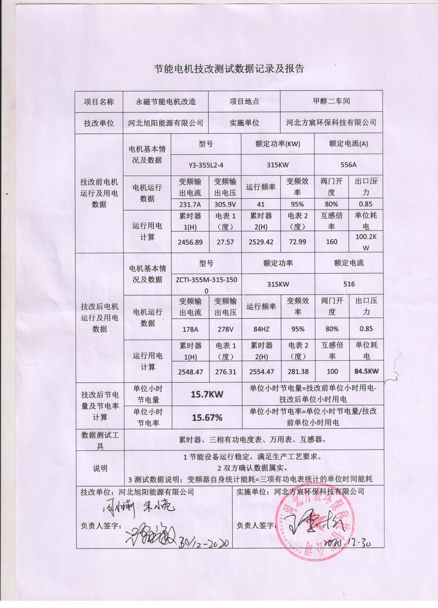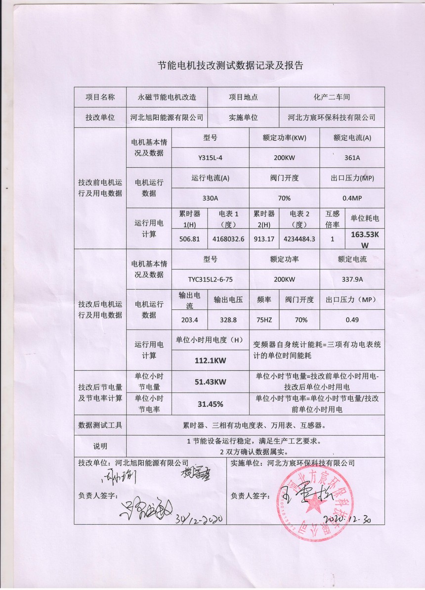 河北旭阳能源有限公司旭阳集团定州园区是隶属于旭阳集团的全资子公司,旭阳集团1995年创立于河北邢台,总部设在北京。现已成为集焦炭、化工、贸易、运营管理服务、科技、地产、炼化等业务板块协同发展的大型企业集团。拥有河北邢台、定州、沧州、乐亭、山东郓城、东明、内蒙古呼和浩特、辽宁朝阳等产业园区,十几家子公司和合资公司。连续12年位列“中国企业500强”、“中国化工企业50强”、“中国制造企业500强”。是河北省重点培育的“千亿”级企业集团之一,同时为河北省“巨人计划”创业创新团队。 旭阳集团定州园区位于定州经济开发区,2003年成立,现有河北旭阳能源有限公司、定州天鹭新能源有限公司、定州旭阳科技有限公司、定州旭邦新材料有限公司等公司,主要产品有甲醇、焦油、粗苯、硫酸铵、液氨、冶金焦等30余种,现有员工2000余人,占地面积3000余亩,自有铁路专用线19公里,成立以来,已累计投资过百亿元, 2019年销售收入114亿元,税金5亿元,连续三年成为定州市过百亿企业。 2020年10月,北能方宸公司技术人员对园区内电机进行现场勘察,发现电机存在效率低、功率因数低、启动电流大等问题,北能方宸公司针对设备的不同运行特点做了分析,综合考虑了贵公司设备的运行规律、工艺要求、以及工厂的场地条件等因素,根据以下设计原则,量身定做了一套完整的电机能效提升方案。并选取3台电机作为改造试点(315KW消防水泵、200KW低温水泵、45KW低温水泵),技改后节电率分别为15%、31%和14%,温升低、噪音小,现场反应非常好。 2021年7月北能方宸公司与定州旭阳签订《永磁电机节能改造》合同,对园区内焦化、化产和甲醇车间的19台电机进行节能改造升级。 上一篇山西森泽能源科技集团下一篇滦县磐石水泥有限公司 |